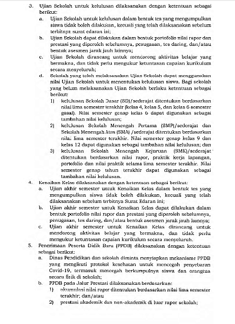 a. Dinas Pendidikan dan sekolah diminta menyiapkan mekanisme PPDB yang mengikuti protokol kesehatan untuk mencegah penyebaran Covid-19, termasuk mencegah berkumpulnya siswa dan orangtua secara fisik di sekolah;