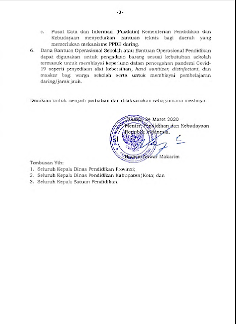 Suat Edaran ini ditujukan Gubernur; Bupati/Walikota di seluruh Indonesia. Dan ditembuskan pada seluruh Kepala Dinas Pendidikan Provinsi, Kepala Dinas Pendidikan Kabupaten/Kota dan Kepala Satuan Pendidikan.
