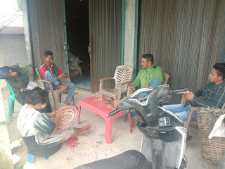 Terlihat beberapa anak muda antusias belajar memperhatikan cara membuat topi dan tas di rumahnya pasar Lagan, kecamatan Linggo Sari Baganti, Pesisir Selatan.