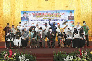 Serahterima jabatan atau pelantikan dilaksanakan di Aula Kantor Bupati Pasaman Barat, Rabu (17/02/2021).