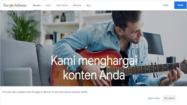 - Masukkan email dan password pada kolom yang telah disediakan. Link ke Google Adsense: https://www.google.com/adsense/