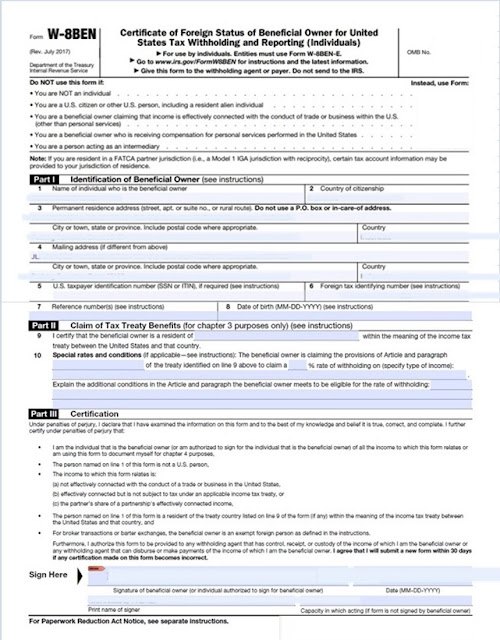 - Klik Formulir W-8BEN: Default untuk melihat Sertifikat Status Asing Pemilik Manfaat untuk Pemotongan dan Pelaporan Pajak Amerika (Perorangan) yang dikirim oleh Google Adsense untuk Anda, dan dapat di-download, berformat PDF.