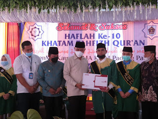 Kegiatan penyerahan tersebut dilakukan secara simbolis saat menghadiri Wisuda Tahfiz Quran angkatan ke – 10 yang digelar di halaman PontrenMu jalan RI Dt Sinaro Panjang nomor 1-6 Kelurahan Tanah Pak Lambiak, Sabtu (10/4).