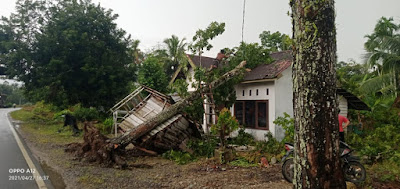 Ranah Batahan,(Andalasrayanews.com)-Hujan deras beserta angin kencang terjadi sejak siang hingga sore tadi sekitar pukul 16:00 WIB di Ranah Batahan.Hujan yang beserta angin tersebut menumbangkan sebatang pohon pelindung jalan dan nyaris menimpa sebuah Bangunan yang berada di Jorong Muara Mais Nagari Batahan Kecamatan Ranah Batahan Pasaman Barat,selasa sore (27/4/2021).