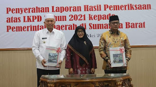 Sementara itu, Kepala Badan Pemeriksa Keuangan Republik Indonesia (BPK RI) Perwakilan Sumatera Barat, Yusnadewi mengatakan bahwa daerah yang mendapat WTP hari itu telah menyerahkan laporan keuangan daerah tahun 2021 yang diserahkan pada 28 Maret 2022 itu lebih cepat dari yang diminta BPK.