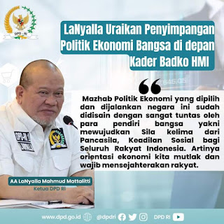 LaNyalla yang hadir secara virtual, menegaskan arah perjalanan bangsa sudah menyimpang dari disain awal negara ini, termasuk arah politik ekonomi nasional kita. Sehingga tujuan negara tidak kunjung terwujud.