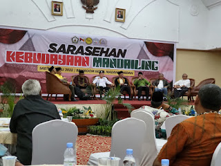 MEDAN, andalasrayanews.com.Kota Medan menjadi saksi bersatunya Masyarakat Mandailing pada acara Serasehan Kebudayaan Mandailing, bertempat di Ball Room hotel Madani Medan pada tanggal 16 Juli 2022. Atas dasar kesadaran bersama pentingnya persatuan Masyarakat mandailing demi masa depan yang lebih baik. Dengan ias ni boi dohot bontar ni ate-ate (Kejernihan pikiran, dan kerendahan hati). Seluruh masyarakat mandailing tumpah ruah dalam acara yang meriah.
