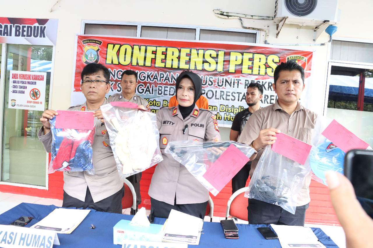 Andalasrayanews.com||Polresta Barelang – Kapolsek Sei Beduk AKP Betty Novia menggelar Konferensi Pers Ungkap Tindak Pidana Kekerasan Terhadap Anak yang mengakibatkan meninggal Dunia yang di dampingi oleh Kasi Humas AKP Tigor Sidabariba, SH, serta Kanit Reskrim Iptu Yustinus Halawa, SH bertempat di Mapolsek Sei Beduk. Sabtu (05/11/2022).