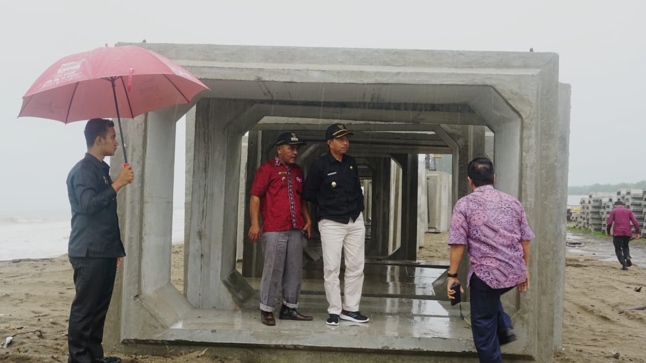 Pasbar, Andalas Raya News|Wakil Bupati Pasaman Barat (Pasbar) Risnawanto bersama stakeholder terkait meninjau proses pembangunan penahan ombak atau batu grip pohon seribu dan seawall (dinding pemecah ombak) di Suak, Kecamatan Sasak Ranah Pasisie, Kamis (17/11).
