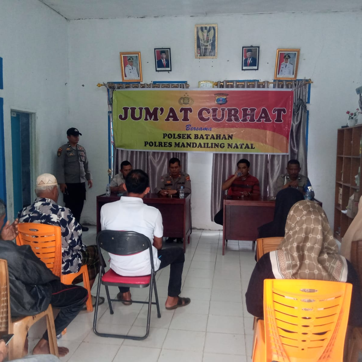 KUBANGAN TOMPEK,Andalas Raya News-Kapolsek Batahan Iptu Maranaek Dalimunthe S.H bersama personilnya mendengarkan aspirasi masyarakat Desa kubangan Tompek melalui program “Jumat Curhat” yang diselenggarakan di Kantor Desa Kubangan Tompek Kecamatan Batahan,Kabupaten Mandailing Natal,Jumat (10/02/2023).