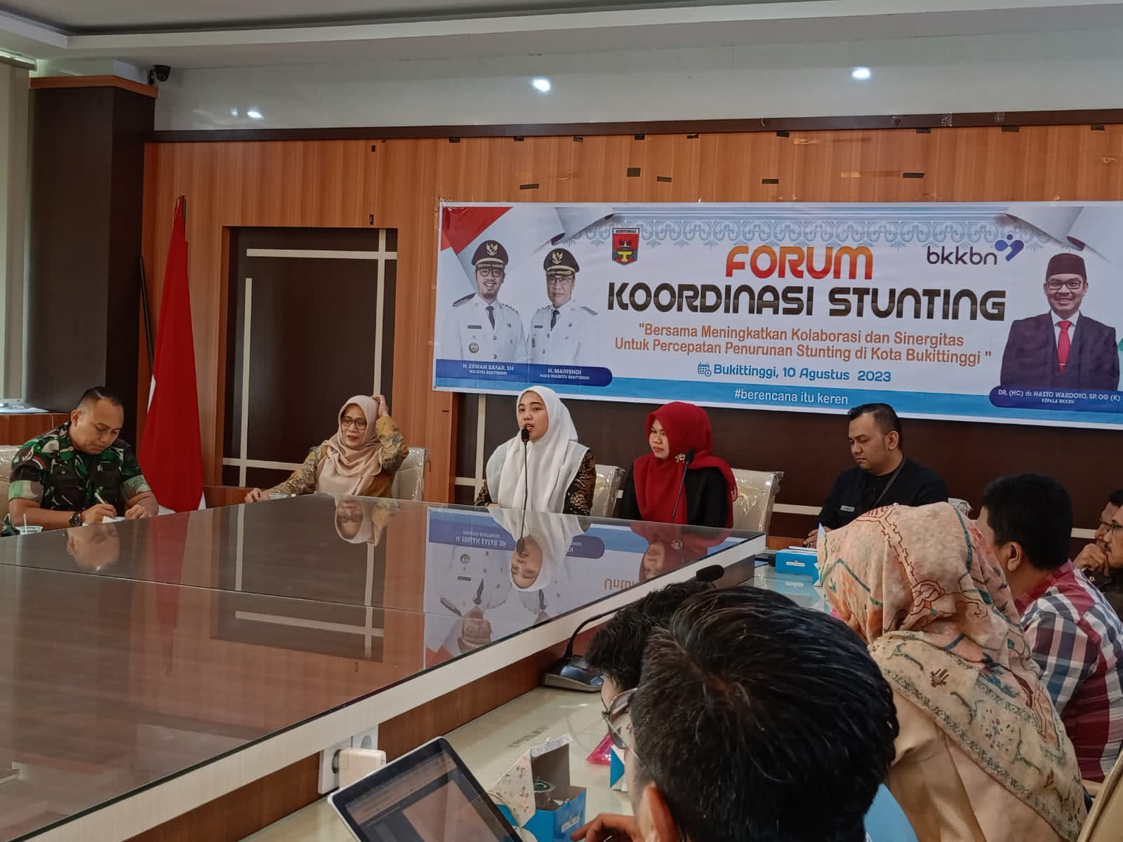 Bukittinggi, Andalas Raya News- Kegiatan Forum Koordinasi Stunting di Balai Kota Bukittinggi bersama BKKBN Sumbar Kamis, 10/8/2023 terkait sosialisasi penurunan angka stunting di wilayah kota Bukittinggi. Hadir dalam kesempatan itu ketua TP PKK Bukittinggi Fiona Erman Safar dan Wakil Ketua TPPS Bukittinggi Isra Yonza.Pada kesempatan itu, Ketua TP PKK Bukittinggi Fiona Erman Safar mengatakan pihaknya juga melakukan sosialisasi asupan gizi bagi remaja dan anak-anak. Selain itu ada gerakan memanfaatkan pekarangan rumah menanam tanaman untuk peningkatan gizi anak.