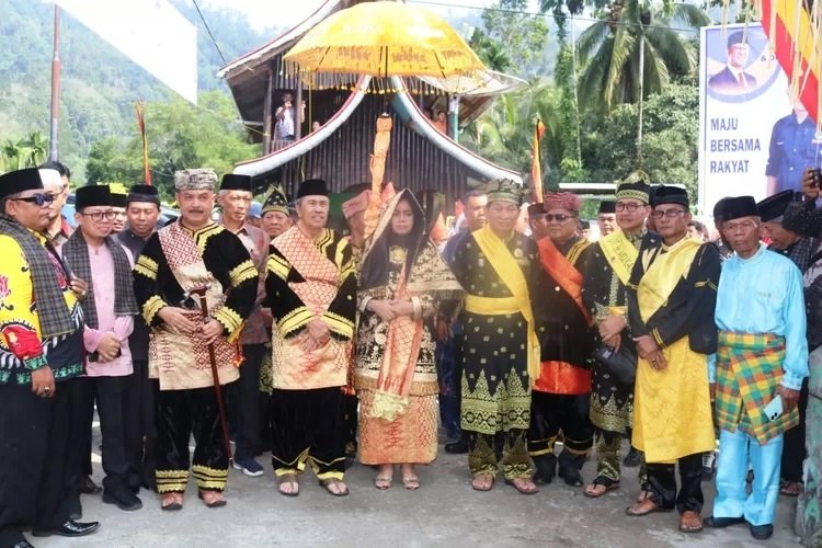 Pelewaan atau pengukuhan gelar kehormatan (Sansako) adat kepada Gubernur Riau beserta istri, dilaksnakan di rumah gadang kaum suku Caniago Lubuak Nyiur milik Dt. Rajo Nan Sati H. Jhon Satri, S.H. MH di Kecamatan Batang Kapas, Kabupaten Pesisir Selatan, Provinsi Sumatera Barat Sabtu (16/9/2023) pukul 09.40 Wib.