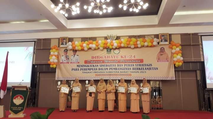 Dharma Wanita Persatuan (DWP) Kabupaten Pasaman Barat (Pasbar) meraih juara III tingkat Sumatera Barat pada Pelaksanaan E-Reporting. Penghargaan tersebut diserahkan langsung oleh Ketua DWP Provinsi Sumatera Barat (Sumbar) Ny. Lina Hansastri kepada Ketua DWP Pasbar Ny. Ayu Hendra Putra, dalam peringatan HUT DWP ke-24 Tingkat Provinsi Sumatera Barat yang diselenggarakan di Hotel Pangeran Beach, Kamis (14/12).