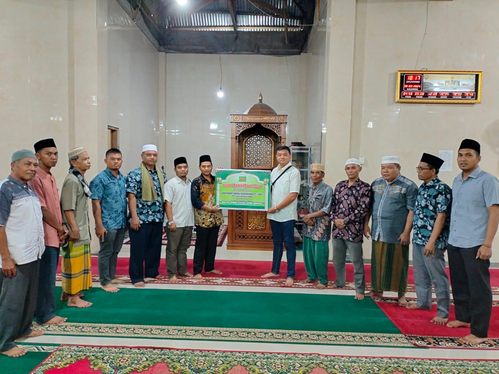 Pasbar, Andalas Raya News| PTAgrowiratama, Pasaman Barat Sumbar, melaksanakan Safari Ramadhan 1445 Hijriah serta salurkan CSR ( Corporate Social rensponsibility ) dibeberapa Kejorongan disekitar lingkungan perusahaan.