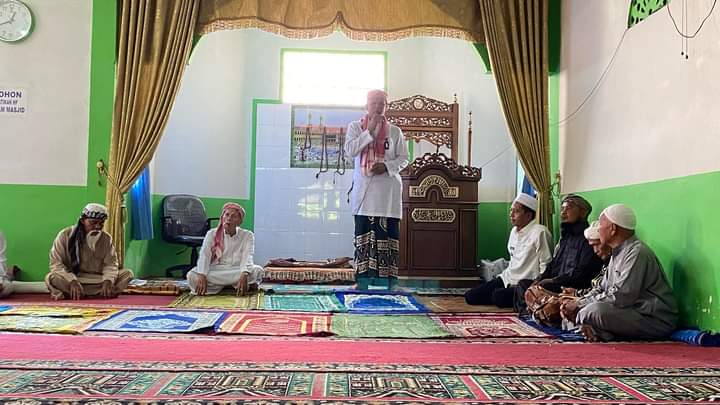 Wakil Bupati Pasaman Barat, Risnawanto mengikuti tradisi Manjalang Buya Syeh Mudo Durian Tibarau, Kecamatan Kinali, Kabupaten Pasaman Barat, Selasa (28/5). Kegiatan yang berlangsung di Surau Syeh Mudo Durian Tibarau itu, diikuti puluhan jemaah suluk yang dijamu oleh keluarga dengan makan bersama.