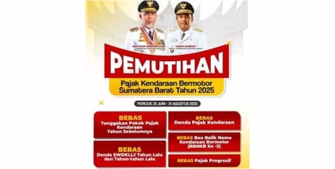 Padang — Pemerintah Provinsi Sumatera Barat (Pemprov Sumbar) resmi menggelar program pemutihan pajak kendaraan bermotor sebagai upaya mendorong pemulihan ekonomi daerah dan meningkatkan kesadaran masyarakat dalam membayar pajak.