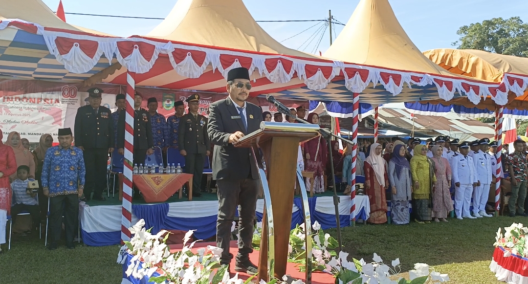 BATAHAN, ARN | Edi Adwar anggota DPRD Dapil lV Madina dari fraksi Partai Amanat Nasional (PAN) Mendapat amanah sebagai pembaca teks Proklamasi di Peringatan HUT RI Ke -80 tahun 2025 di Kecamatan Batahan.
