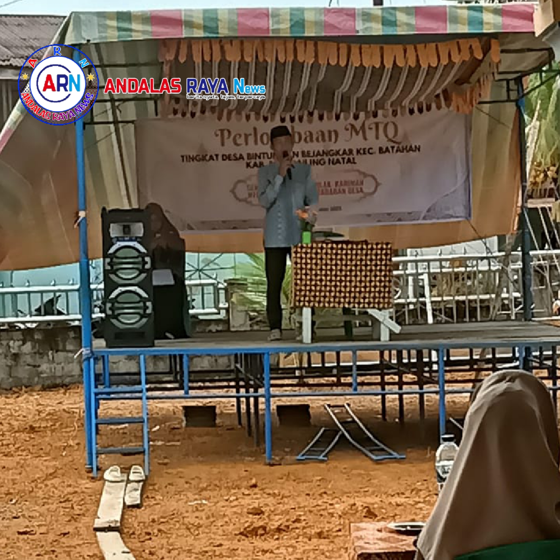 BATAHAN, Andalas Raya News | Dengan berthemakan ” Generasi Yang Berakhlaq Karimah Merupakan Pilar Peradaban Desa”, Pemerintahan Desa (Pemdes) Bintungan Bejangkar, Kecamatan Batahan adakan lomba Musabaqoh Tilawatil Qur’an (MTQ) tingkat desa, Minggu (10/08/2025).