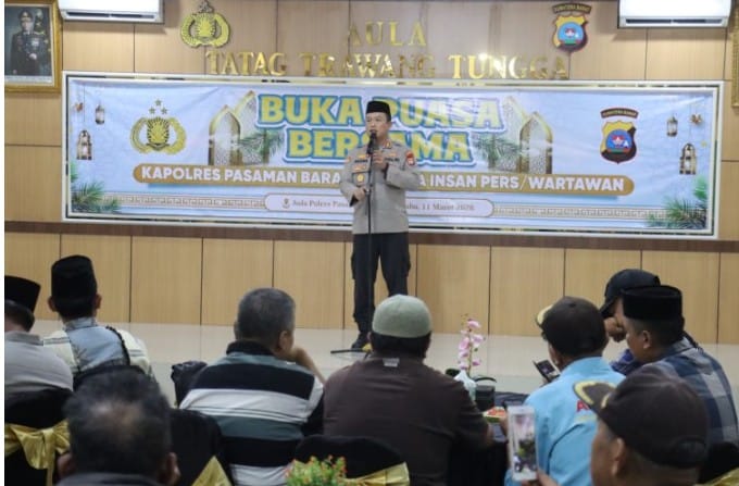 Kepolisian Resor (Polres) Pasaman Barat, Sumatera Barat (Sumbar), menggelar acara buka puasa bersama para wartawan se-Pasaman Barat, di Aula Tatag Trawang Tungga Mapolres setempat, Rabu (11/3/2026).