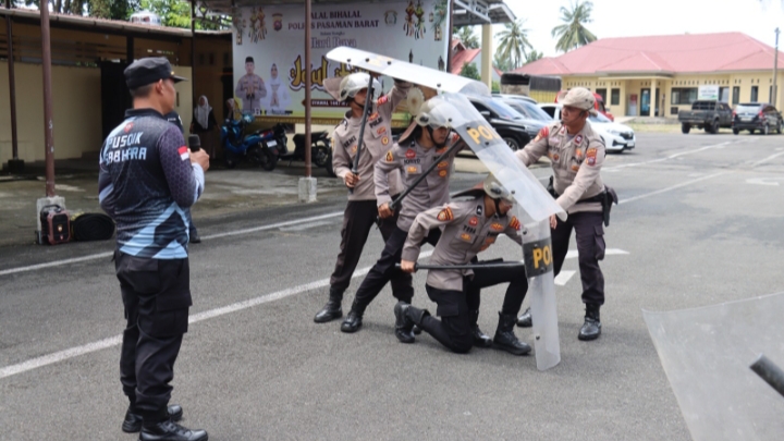 Pasbar | Polres Pasaman Barat menggelar latihan pengendalian massa (Dalmas) di halaman Mapolres setempat, Rabu (15/4/2026).